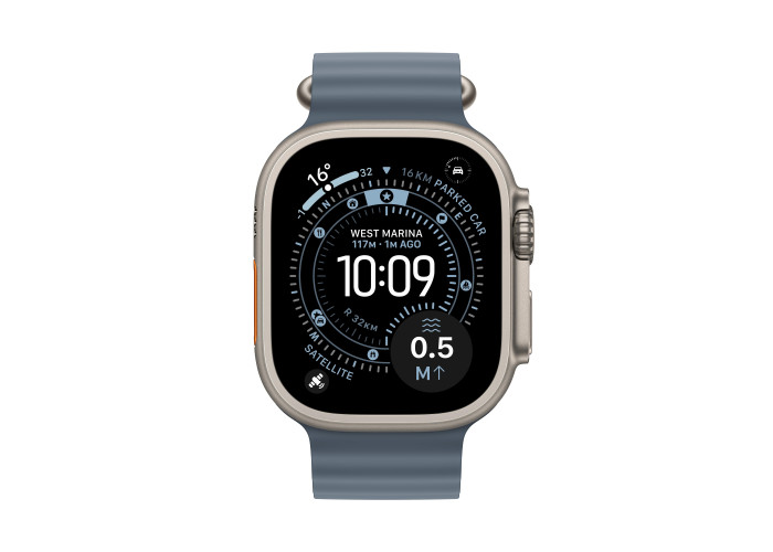 Apple Watch Ultra 3 (2025), GPS + Cellular, титановый корпус 49 мм естественного цвета, ремешок Ocean цвета «синий якорь»